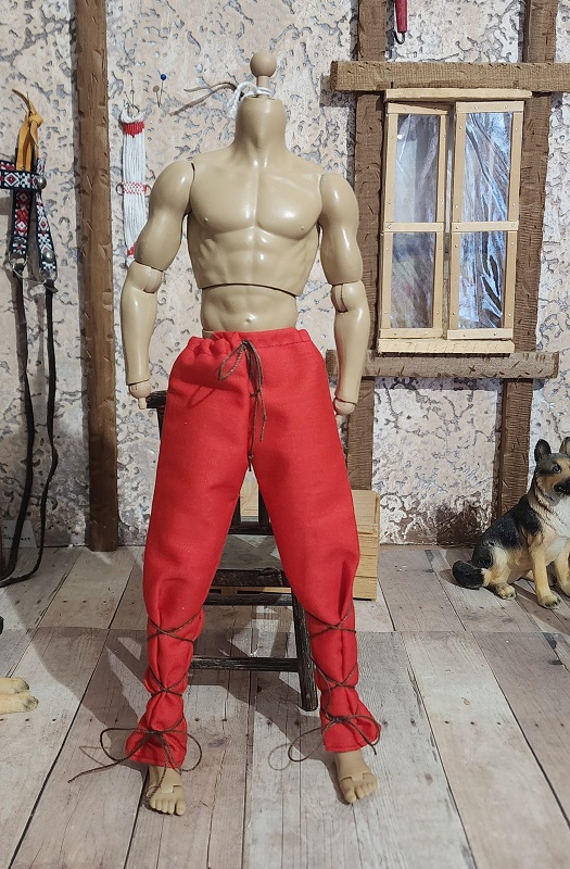 These 1/6 scale Calf laced trousers have a drawstring waistband and laces at the back of the calves for you to lace downward. I can make these in any color. Email me and let me know what color you want.