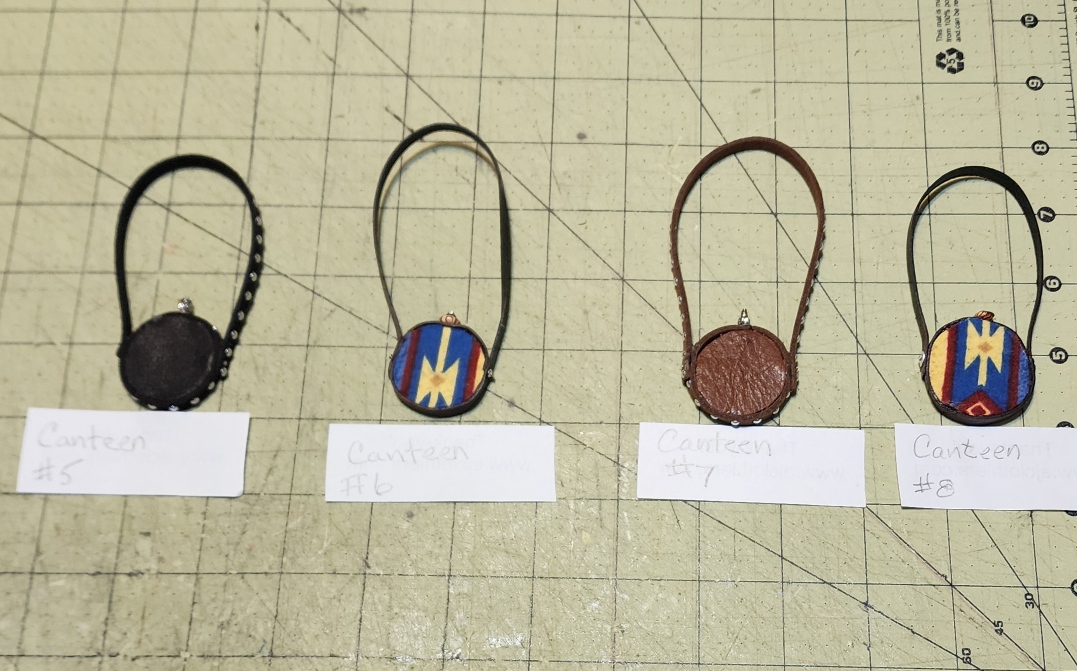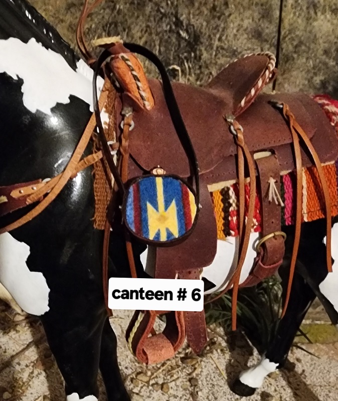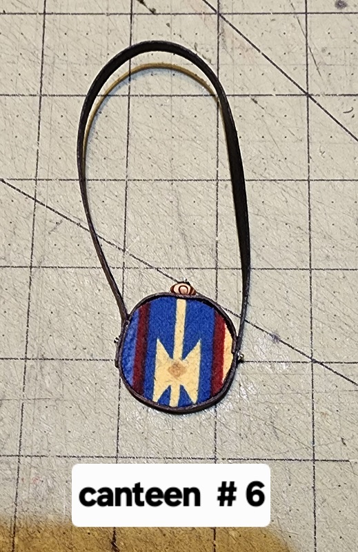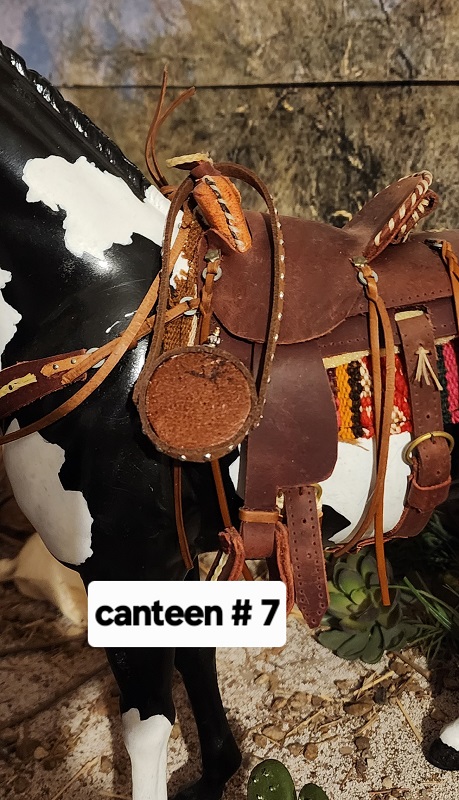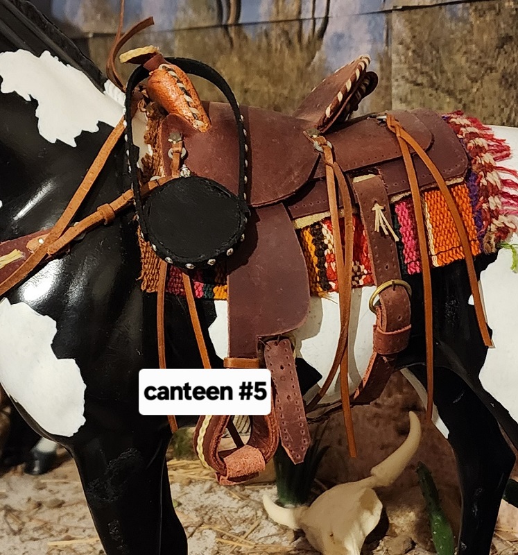These 1/6 scale canteens come in a couple of styles in this listing. Make your choice from the drop down menu. Don't let your cowboy go thirsty across the prairie!