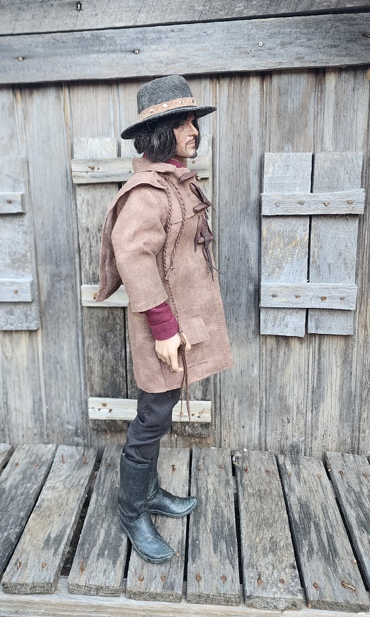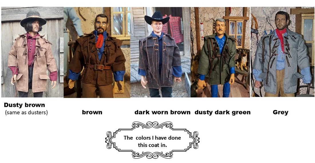 This 1/6 scale coat is styled like the Josey Wales coat from the movie. I have done it in different custom colors.