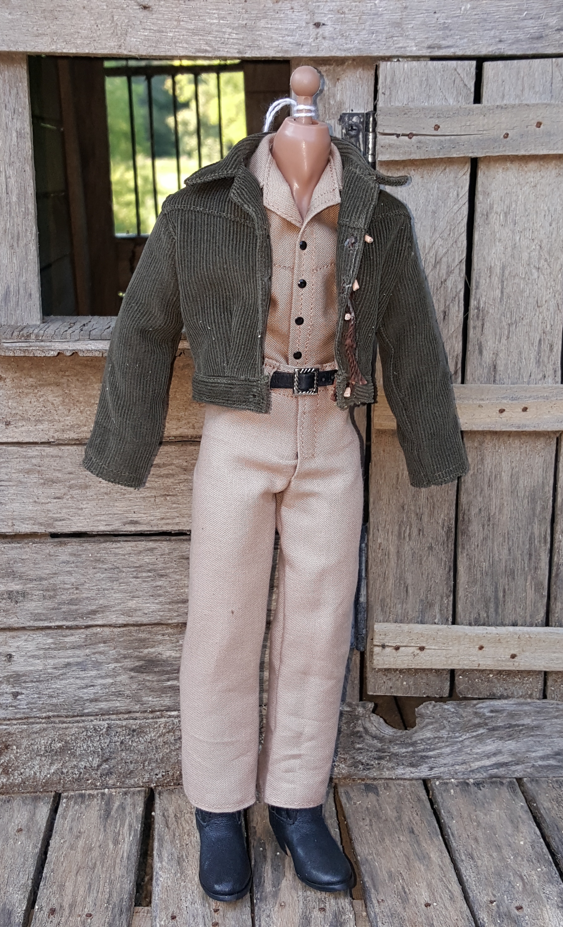 This 1/6 scale outfit is fashioned after Little Joe Cartwright outfit. It comes with pants, real leather belt, shirt, and corduroy jacket. This outfit is made when you order it. So allow 2 weeks for me to make it for you. I make all the Cartwright outfits, which are available in other listings.