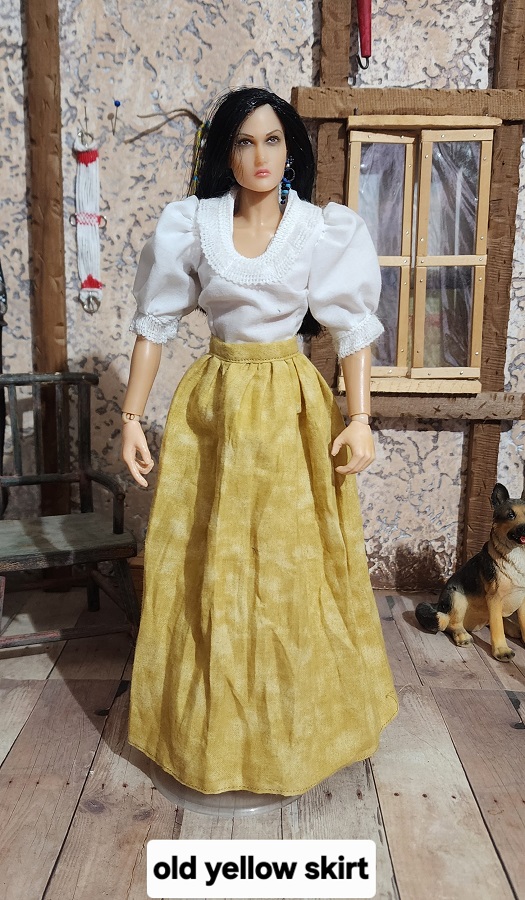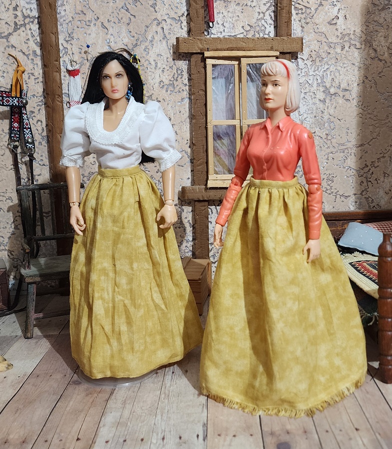 These 1/6 scale skirts are made with 100% cotton. They have a hook closure in the back.