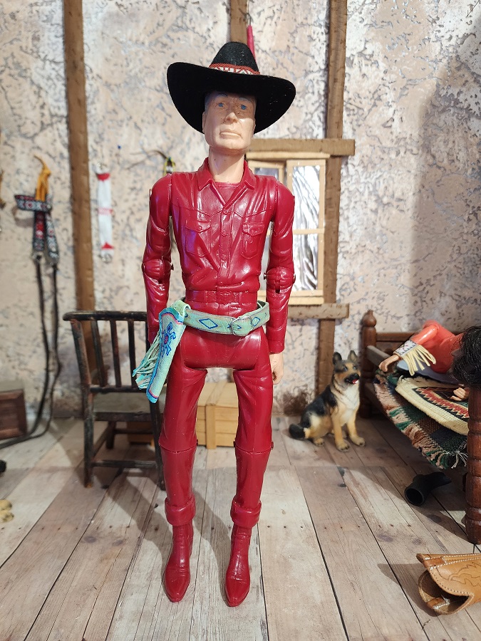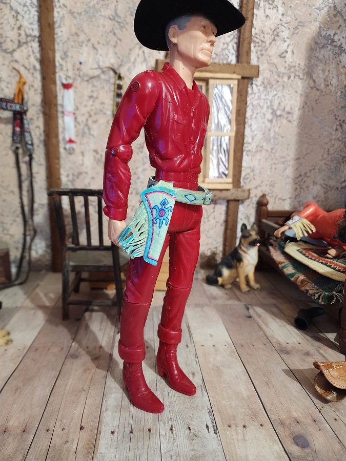 You will need to supply your own gun, as this set doesn't come with one. The waist belt is 8" long, so this will fit most 1/6 scale figures.